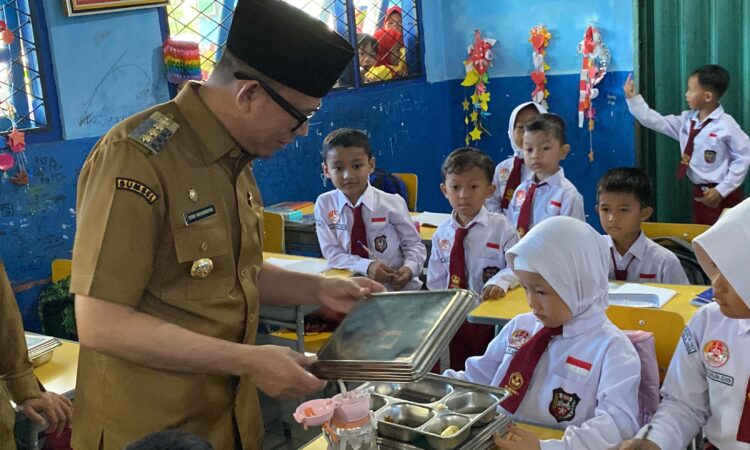 BATURAJA, KLIKOKU.ID – Bupati OKU H Teddy Meilwansyah S.STP, MM, M.Pd mengecek secara langsung anak-anak Sekolah Dasar menyantap Makan Bergizi Gratis (MBG). Bupati fokus kepada anak kelas 1 SD menyantap MBG yang dibagikan.