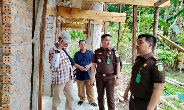 Kasi intel Kejari OKU Endri Dunan SH didampingi Kasubsi Intel Abdillah Arby SH meninjau pembangunan proyek Pustu di Desa Laya. Foto : ist