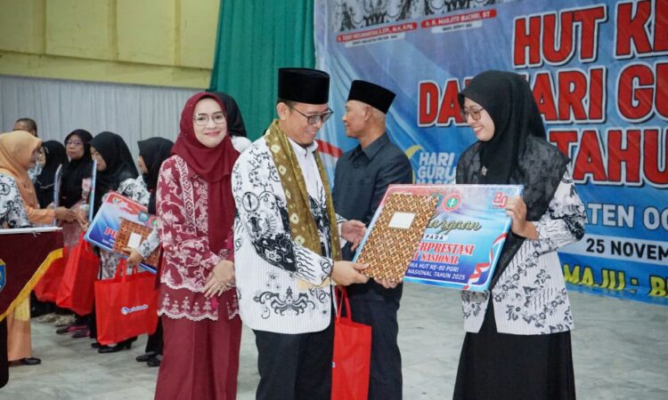 BATURAJA, KLIKOKU. ID – Ribuan Guru se Kabupaten Ogan Komering Ulu (OKU) menghadiri Peringatan HUT ke-80 PGRI Hari Guru Nasional (HGN) tahun 2025 yang dilaksanakan Dinas Pendidikan OKU berlangsung di Gedung Kesenian Baturaja pada Kamis (27/11/2025).
