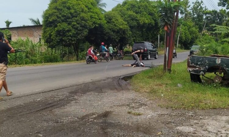Peristiwa penembakan ODGJ yang diduga dilakukan oleh oknum Polisi di jalan lintas sumatera kelurahan Kemelak Bindung langit. Foto : ist